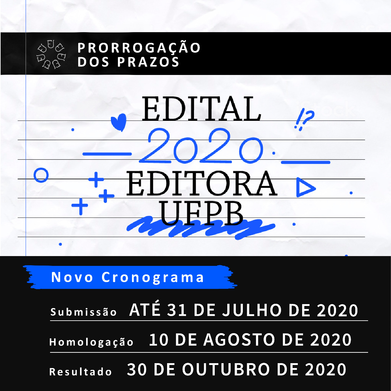 6.4 Homologação da submissão: 10 de agosto de 2020 (período para Editora UFPB verificar se o texto submetido atende às regras do edital e para conferir a documentação);